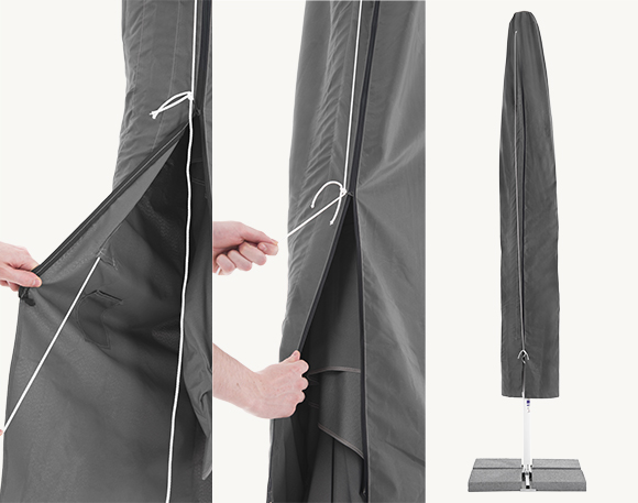 - Złóż parasol i upewnij się, że poszycie jest całkowicie suche, aby uniknąć pleśni.