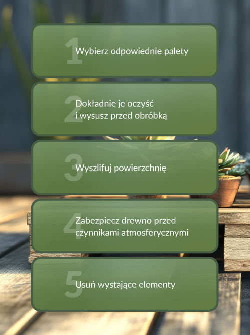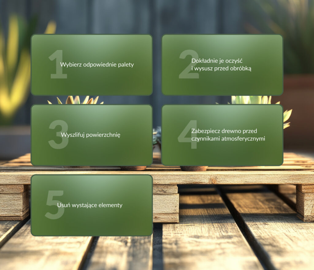 Wskazówka: Wybierz palety w dobrym stanie – bez pęknięć, drzazg czy śladów pleśni.