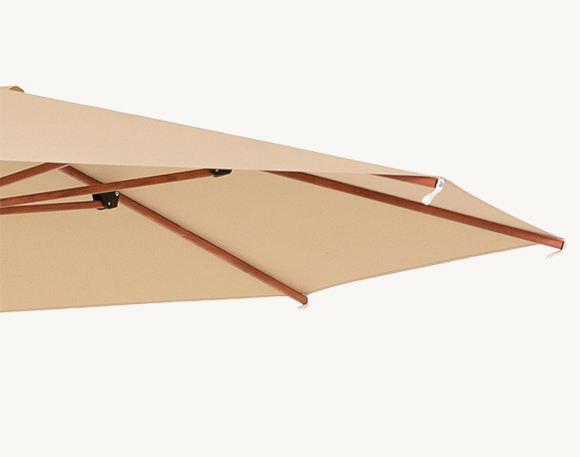 Odpowiednio zaprojektowana czasza parasola została wykończona wentylem, który usprawnia cyrkulację powietrza pod osłoną. To rozwiązanie ogranicza nagrzewanie się przestrzeni pod parasolem podczas słonecznych dni i podnosi komfort odpoczynku nawet przy wyższych temperaturach.