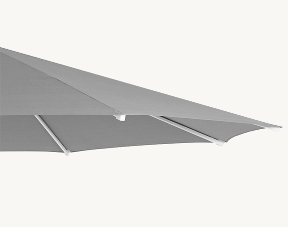 Model Rodos dostępny jest z dwoma rodzajami poszycia, które łączą ochronę przed promieniowaniem UV z długotrwałą estetyką. Poszycie akrylowe* to premium opcja, odporna na blaknięcie i intensywne nasłonecznienie, zapewniająca skuteczną ochronę 98% przed promieniowaniem. Poszycie poliestrowe jest lżejsze, uniwersalne i odpowiednie do codziennego użytku na tarasie lub w ogrodzie, także zapewniając solidną ochronę i trwałość kolorów. Prawidłowa konserwacja zgodna z zaleceniami producenta dodatkowo wydłuża żywotność tkaniny i zapobiega powstawaniu pleśni.