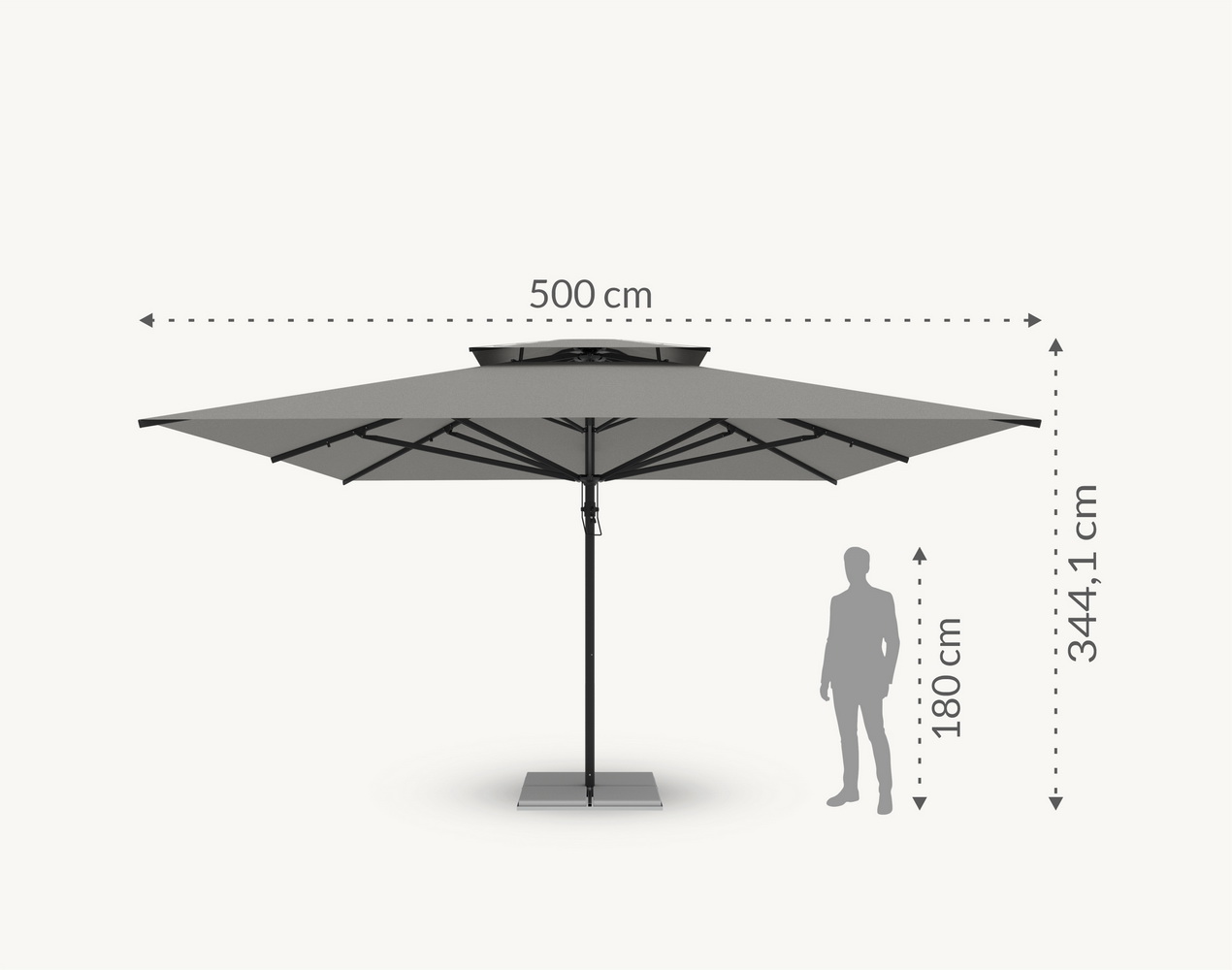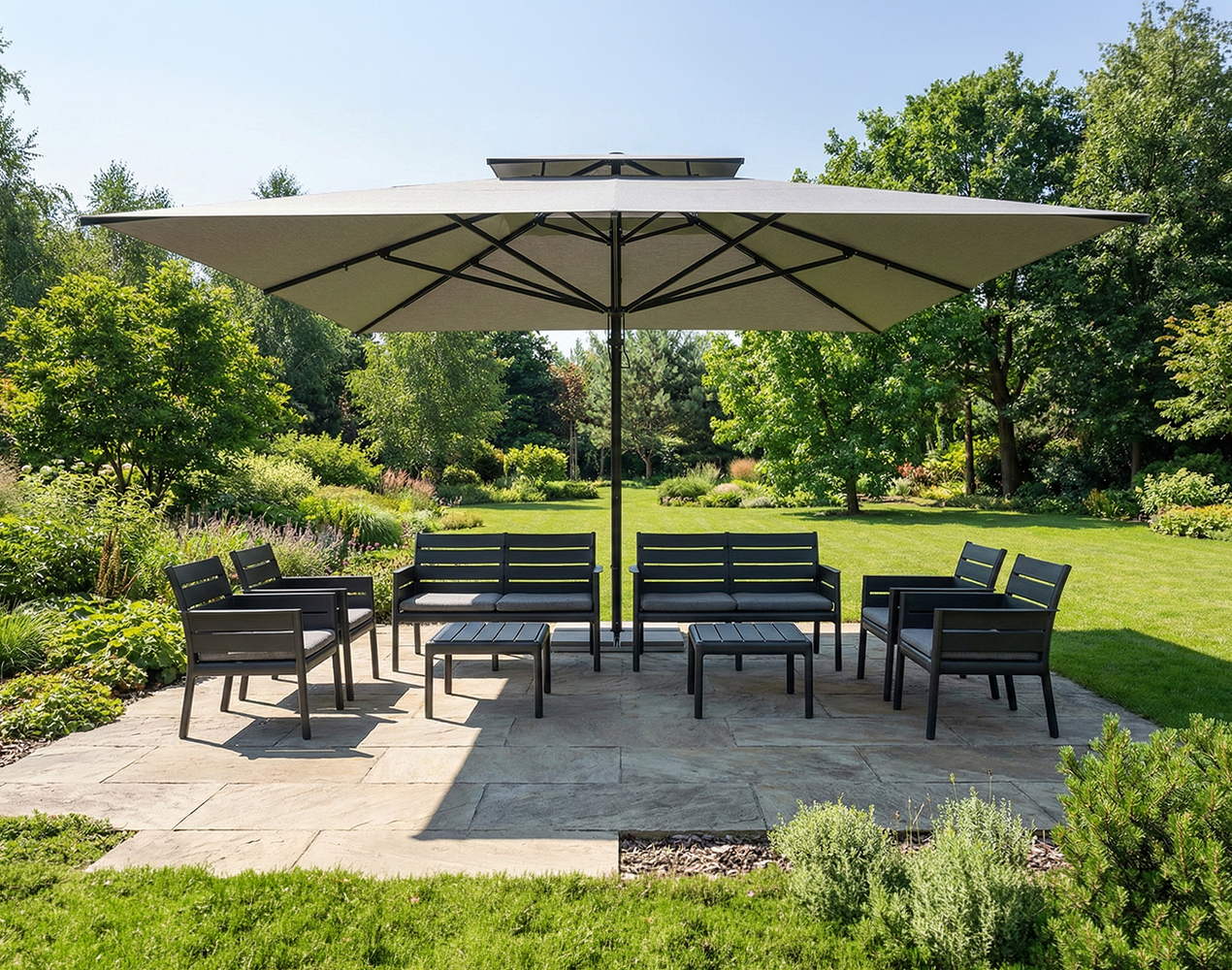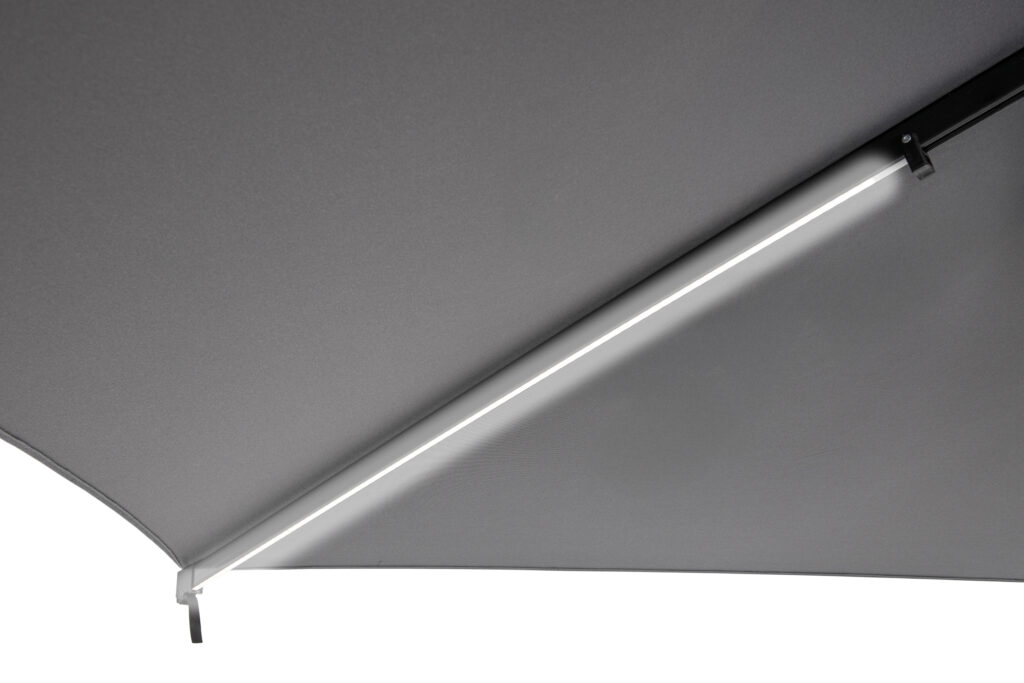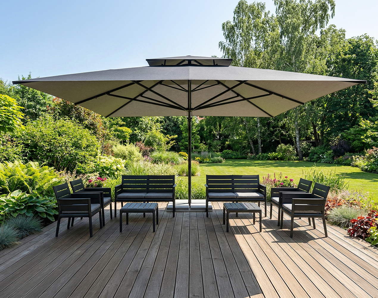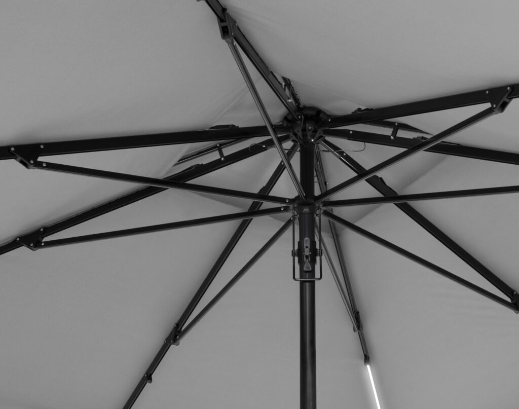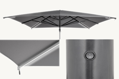 Parasol Vesuvio Quattro wyróżnia się eleganckim, ponadczasowym wzornictwem, które harmonijnie wpisuje się w styl każdego ogrodu i tarasu. Wykonany z solidnych materiałów, zachowuje estetykę na wiele sezonów. Opcjonalne oświetlenie LED pozwala stworzyć kameralną atmosferę po zmroku, przedłużając czas relaksu na zewnątrz.