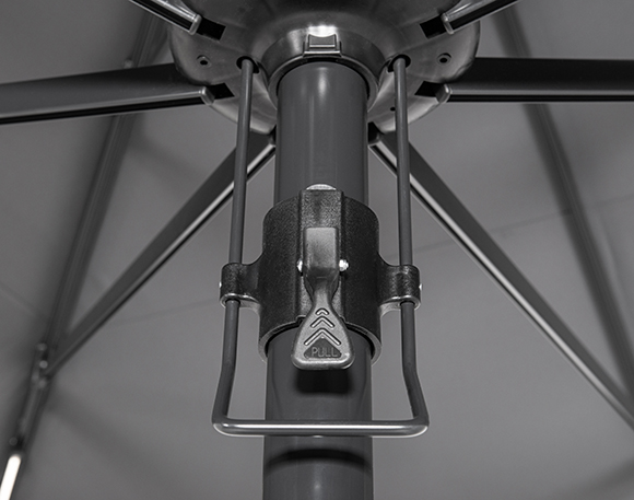 Mechanizm teleskopowy ułatwia otwieranie parasola jedną ręką, co zwiększa komfort użytkowania. Podczas zamykania parasola czasza unosi się ponad blatem stołu, chroniąc meble ogrodowe — to funkcjonalne rozwiązanie, które ułatwia codzienne korzystanie i dba o estetykę Twojego ogrodu.