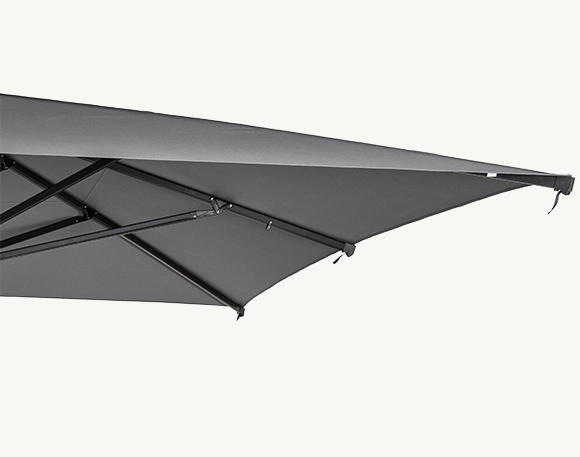 Poszycie parasola Vesuvio Quattro dostępne jest w wariantach akrylowym i poliestrowym, zaprojektowanych tak, aby przez długi czas zachować intensywność kolorów i estetykę. Materiał skutecznie chroni przed 98% promieniowania UV oraz wykazuje wysoką odporność na blaknięcie nawet po długich okresach ekspozycji na słońce, zapewniając trwałość i komfort użytkowania przez wiele sezonów.