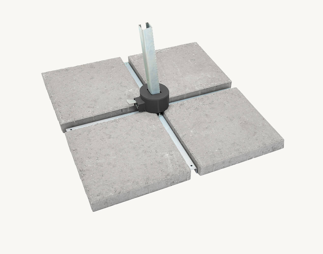 Betonowa podstawa Rio z rotatorem to solidne wsparcie parasola, które łączy dużą stabilność z wygodą ustawiania cienia. Kwadratowa konstrukcja o wadze 173 kg skutecznie dociąża maszt, dzięki czemu parasol pewnie stoi i mniej reaguje na podmuchy wiatru, co zwiększa bezpieczeństwo w strefie wypoczynku. Zintegrowany rotator umożliwia obrót czaszy o 360°, pozwalając szybko skorygować kierunek cienia bez przesuwania ciężkiej podstawy i bez przestawiania mebli. Stalowa nasada pomaga utrzymać prawidłowy pion całej konstrukcji, a odporność na warunki atmosferyczne i korozję sprawia, że podstawa zachowuje trwałość i funkcjonalność przez wiele sezonów.
